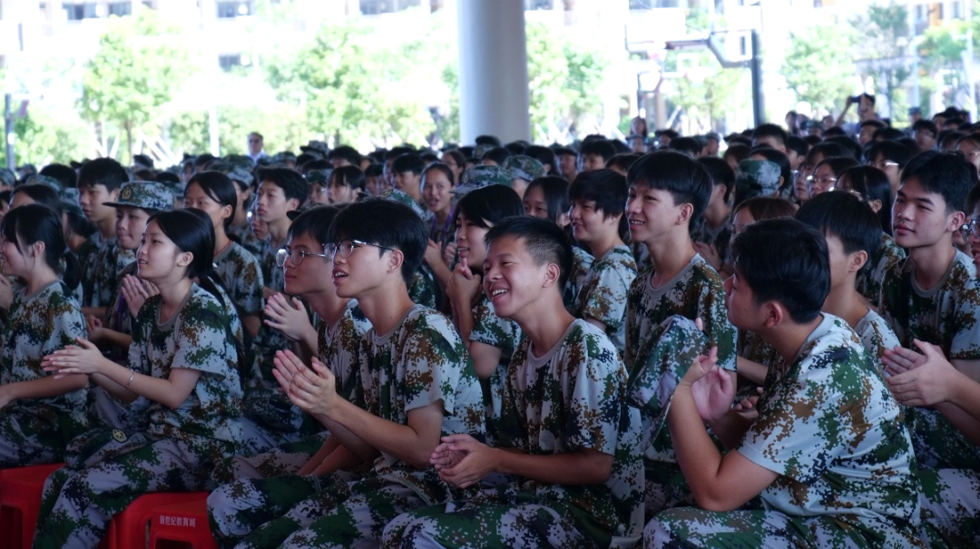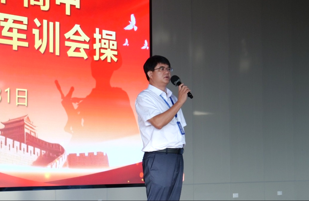 北流市人民武装部姚雄东副部长首先发表动员讲话。他回顾六天军训历程,祝贺同学们顺利完成任务,并向支持军训工作的校领导、老师及工作人员表示感谢。姚副部长高度肯定了学子们的表现,赞扬大家顶着烈日风雨坚持训练,从队列生疏到演练娴熟,展现出新时代青年奋发向上的精神风貌。