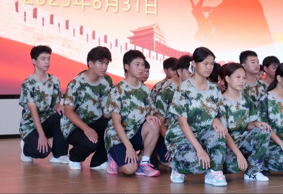 整齐划一的队伍、气势磅礴的口号、刚劲有力的敬礼、步调一致的蹲下,凝结了同学们的刻苦付出,展现出蓬勃的青春朝气。那是军人的昂扬,那是少年的模样,那是新华学子破茧的勋章。