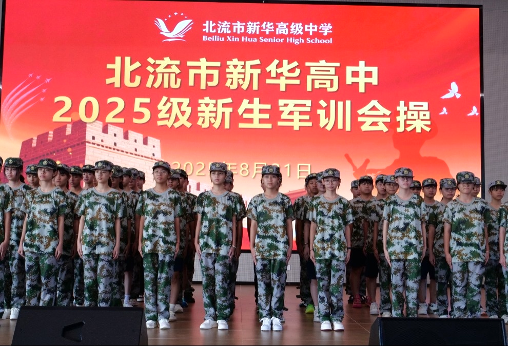 集结!北流市新华高中2025级新生军训会操
